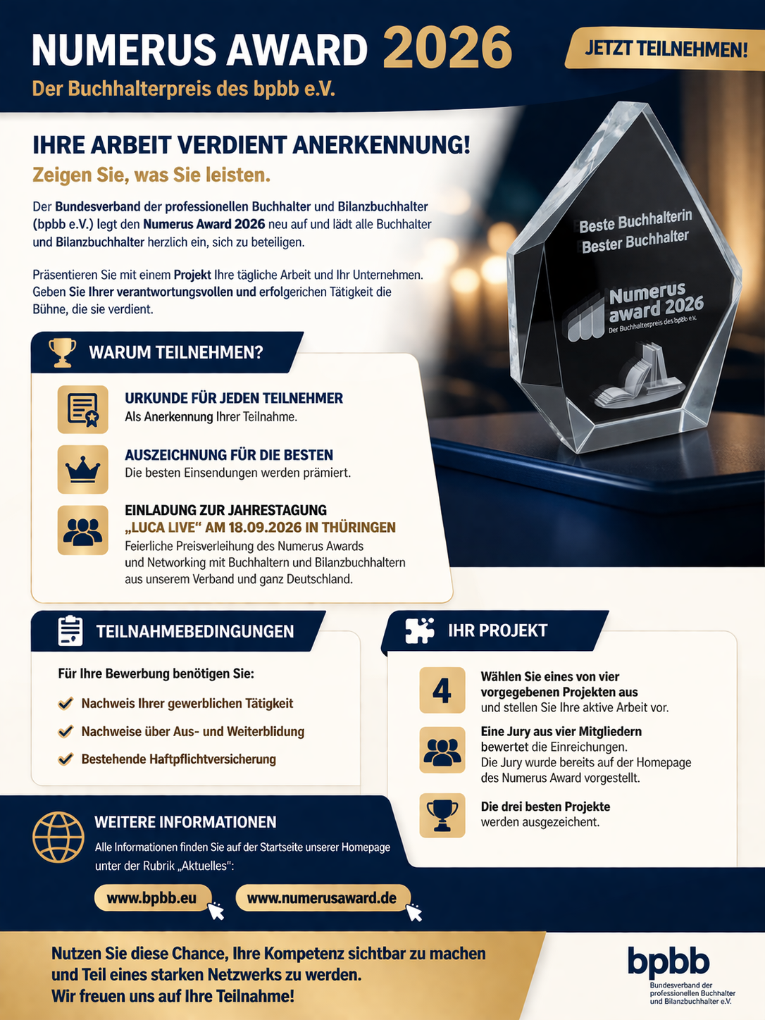 Der bpbb e.V. wurde gegründet, um endlich Bewegung in den Stillstand der Interessenvertretung für selbständige Buchhalter und Bilanzbuchhalter zu bringen. Außerdem stehen wir für Transparenz in allen Belangen: Angefangen von den Personen, die hinter dem Verband stehen bis hin zu den Finanzen. Dabei wollen wir unsere Mitglieder auch aktiv einbinden. Der bpbb steht für eine offene Kommunikation, dem Aufbau eines starken Netzwerkes und bestmöglicher Unterstützung der Mitglieder in allen Belangen. Machen auch Sie mit, damit wir dieses Ziel erreichen können!